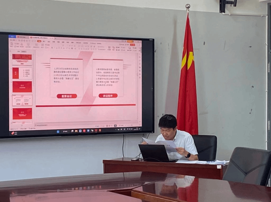会议共有四项议程,第一项议程,传达了2023年全省教育系统党风廉政建设暨警示教育工作会议、云南省教育系统党风廉政建设暨警示教育工作会议、ylg永利警示教育大会暨“清廉云艺”建设推进会的要求和精神。组织学习《省委教育工委、省教育厅、驻省教育厅纪检监察组在ylg永利召开警示教育大会》、《教育要情》、《严实相济·久久为功,加快建设一流艺术院校提供坚强保证》等系列文件。