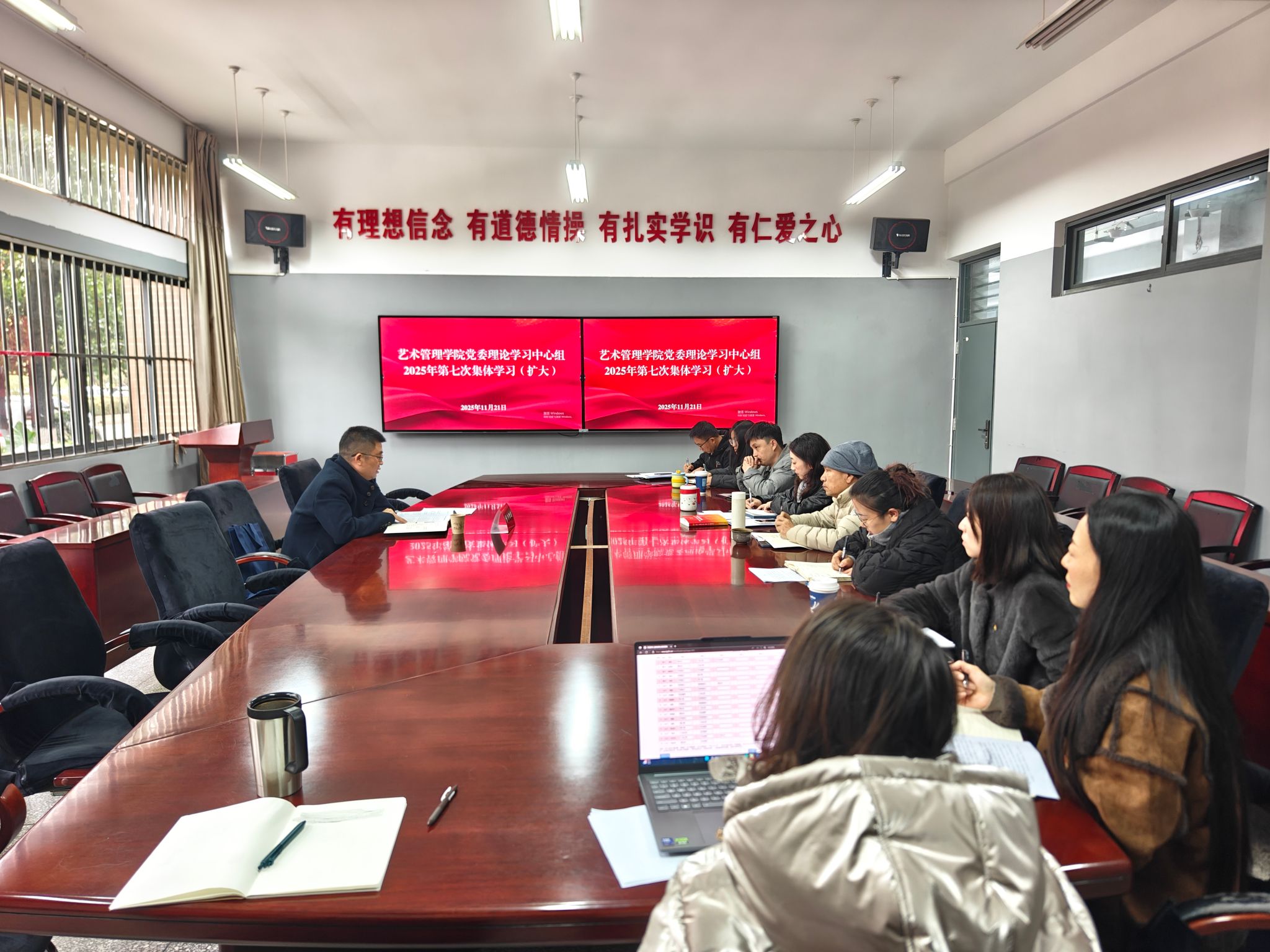 2025年11月21日下午,ylg永利艺术管理公司党委理论学习中心组2025年第七次集体学习(扩大)在ylg060net永利娱高108会议室进行,云南艺术公司党委委员、统战部部长李攀通到会巡听旁听。艺术管理公司党委书记骆圆主持。