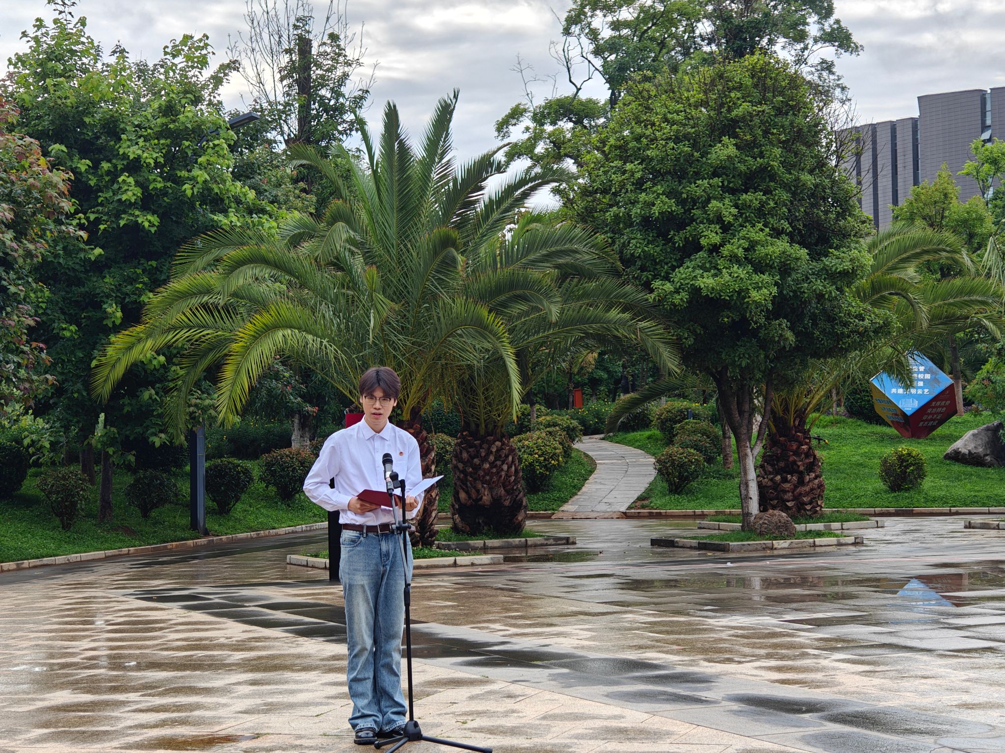 2023级本科生代表沈哲俊同学作国旗下的演讲,号召全体同学将爱国之情转化为学习的动力,脚踏实地,在奋斗中增长才干,书写无愧于时代无愧于祖国的答卷。教师代表昂晋博士勉励同学们,将爱国之情融入专业、扎根实践,用脚步丈量祖国,用专业服务社会,彰显新时代中国青年的形象与担当。