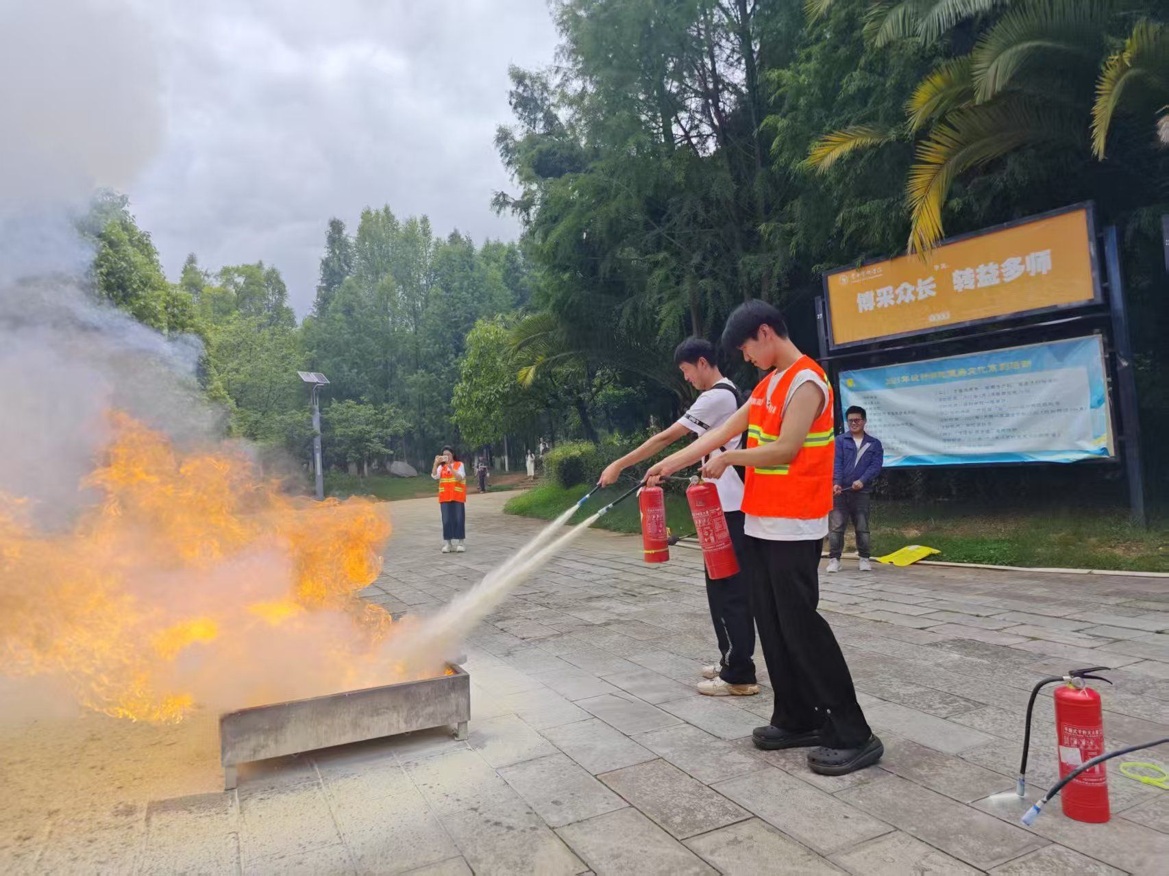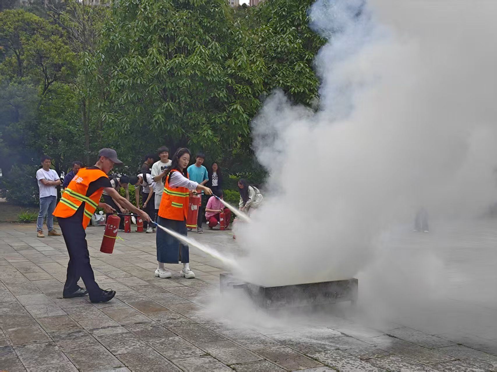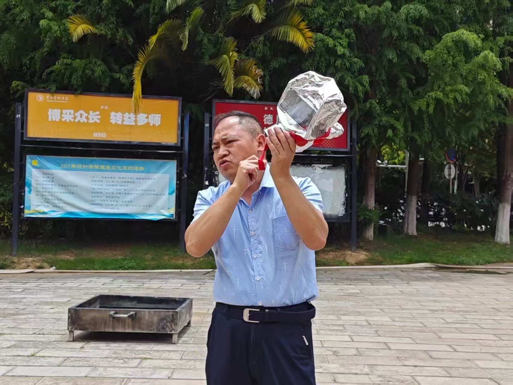 在灭火培训环节,王岩老师为师生带来一堂生动的消防安全公开课。通过案例分析、互动问答等形式,讲授逃生要领及注意事项。普红全老师详细讲解了灭火器的使用方法,并向师生们展示了如何使用自救式过滤呼吸器进行应急自救。参演师生参与了灭火实操,在实践中加深了对消防器材使用方法的掌握。