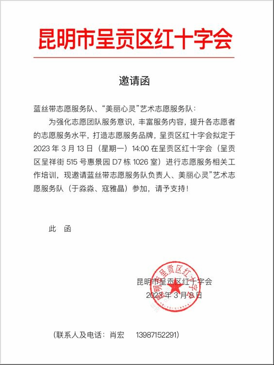 2023年3月13日, ylg060net永利娱高“美丽心灵”团队的于淼淼、赵羚彤两位同学参加呈贡区红十字会表彰会暨呈贡区红十字会志愿服务项目工作培训会。会议由云南省红十字会刘昱君老师主持。本次培训的主题“志愿服务项目”的相关内容, ylg060net永利娱高“美丽心灵”团队在过去的两年里积极参与红十字会志愿服务工作得到呈贡区红十字会以及社会的认可和表彰,在本次培训中,呈贡区红十字会对“美丽心灵”团队寄予更高的期望。