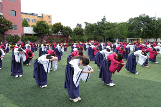 本次成童礼以感恩励志为主题,在遵循礼制与校园环境需求的前提下,结合当下教育形式特点,增添符合时代的创新元素,具有鲜明独特的青少年儿童成长教育意义。《礼记》云:“成童,舞象,学射御。”在儿童成长进入少年时代的这一转折点,通过成童礼仪式达到志存高远、胸怀感恩、身心勇健、自强担当的教化目的。