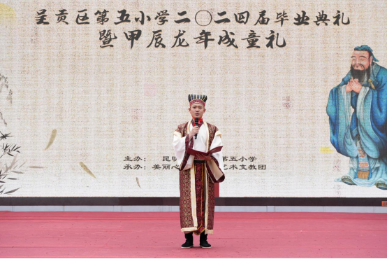 呈贡区第五小学董事长尹艳老师在致辞中强调,要通过举行成童礼仪式,让孩子们明礼雅行、立德从善,学会感恩、懂得立志,同时通过成童礼的方式弘扬中华优秀的传统文化。