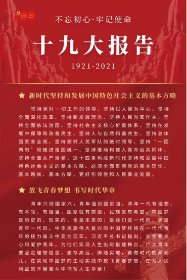 第三部分《开新局·向未来》,通过宣传我党“十四五”规划主要内容、“两个一百年”奋斗目标等知识,以“不忘初心,牢记使命”展开,通过此部分的展览内容,让师生更加坚定了理想信念,树牢了宗旨意识,凝聚了不断前进的精神力量。