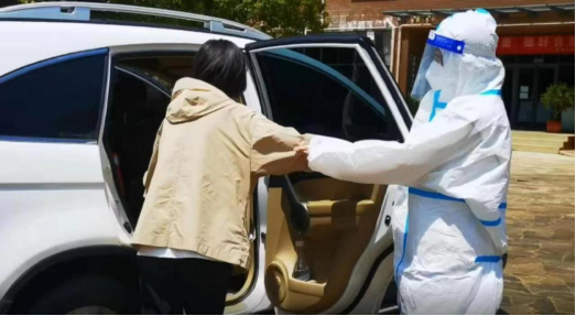 司机和陪诊辅导员在陪诊过程中严格做好个人疫情防护,员工方婷由医务人员陪同返回隔离区进行个人防疫消杀。