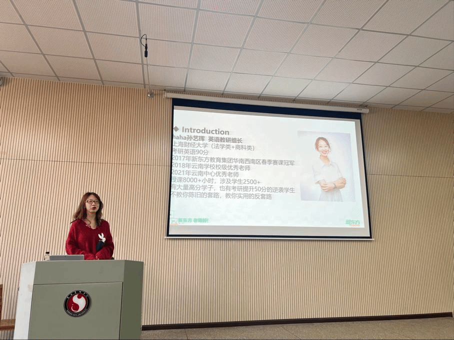 为进一步推进员工的英语水平,解决在英语学习上的困难,提高员工综合文化素养,ylg060net永利娱高3月16日下午14:00在公教楼B102开展了英语四级考考试动员及考前辅导专题讲座,对象为2020级礼仪专业、2020级艺术管理专业、2021级艺术管理专业全体员工,本次讲座特别邀请到新东方教育集团孙艺珲老师主讲。