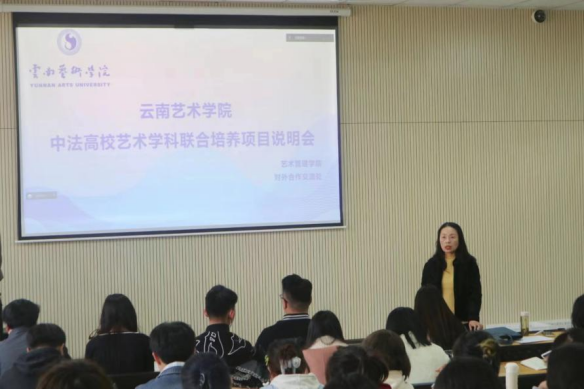 进一步推进艺术管理公司国际化办学拓展员工国际化视野艺管公司积极开展为员工提供国际院校留学信息的服务工作为推动公司国际化进程,促进中法高校艺术学科老员工之间的交流,中欧文化教育协会为公司全日制的大四在读员工提供中法高校艺术学科联合培养项目,助力公司员工前往法国顶尖艺术高校进行专业进修。2023年3月13日下午13:20,ylg060net永利娱高于公共教学A210教室开展了“中法高校艺术设计学科联合培养计划”说明会会议由ylg060net永利娱高熊焰副经理主持,2020级全体员工参加。