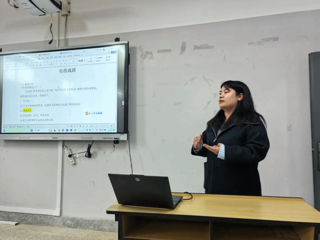 在非物质文化遗产保护专业说课环节,《非遗数字化保护技术基础》课程以实训法为主,将采集的图案和数据进行系统整理,用视觉设计的方法进行创意转化。《非遗技能Ⅰ-2》将非遗传承人引进课堂进行实训教学,进一步激发员工运用技法进行创作的热情,思考学习传统非遗技能的现实意义。《非遗传统表演艺术保护与实践》(传统戏剧)课程融合讲授、讨论、演示多元教法,分别讲授戏剧理论、历史和云南少数民族戏剧等内容。《非遗传统节庆、仪式保护与实践》课程以讲授与实地考察相结合的教学方法,旨在梳理云南非遗传统节庆、仪式的起源、演变过程及其在地方文化发展中的重要性,探索其创新性发展、创造性转化的意义与路径。《文化人类学》《社会学基础》课程均注重为非遗保护提供理论工具:前者揭示非遗的地方性知识体系与活态传承逻辑,后者解构非遗存续的社会基础。二者共同指导非遗的保护生态——尊重文化主体阐释权,推动传统资源在现代社会的创造性转化。《非遗影像记录与制作2》课程通过实训与实操相结合的方式,进一步强化员工在拍摄和剪辑非遗纪录片方面的专业。《非遗传统表演艺术保护与实践》(传统音乐)采用讲授与实训相结合的方式,系统梳理非遗传统音乐的理论体系、发展历程,以及云南少数民族音乐等核心内容。