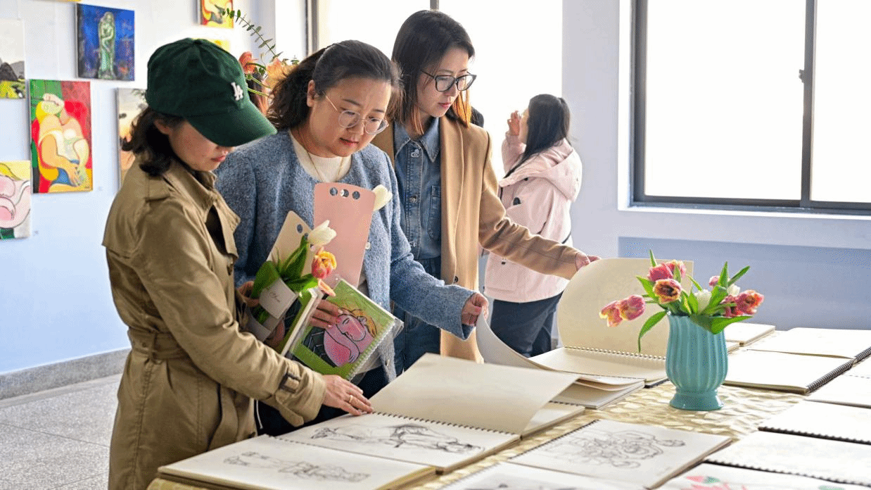员工代表刘瞿同学作为该班的班长及画展设计板块的负责人,分享了策展过程中的挑战与收获:“从设计海报、文创产品到协调布展,每一步都凝聚了团队的心血。我们希望通过作品传递艺术的力量,让更多人感受到美的震撼。”