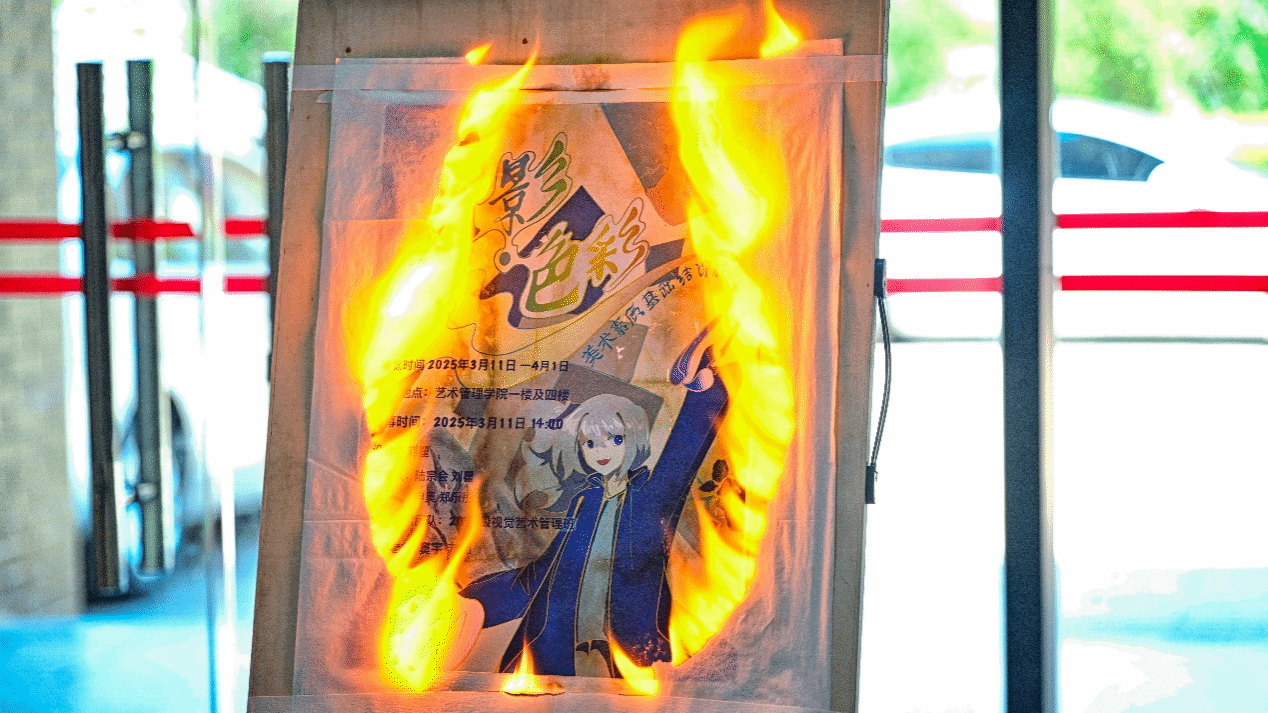 刘林副书记宣布展览开幕,随着傅永寿经理与李思蒂老师共同划火柴,火焰缓缓燃起,揭开画展主题海报,标志着展览正式开幕。这一独特的点火仪式,象征着艺术之光的传承与创新精神的绽放。