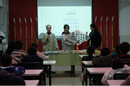 工作坊成员以节气为引,将话题自然过渡至清明习俗与文化,通过“介子推”的典故,生动阐释清明节慎终追远的人文内涵;又以“木鸢演变为纸鸢”的历史脉络,讲述风筝从木制工具到纸制玩具的变化过程。孩子们在趣味互动中,既感受到传统文化的深邃底蕴,也领悟到非遗“活态传承”的当代价值。