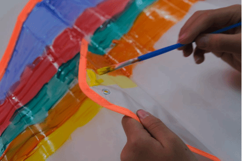 随后,活动进入最令人期待的风筝绘画环节。孩子们手握空白风筝与彩绘工具,在“回声”工作坊师生指导下展开创作。有的以青绿山水描摹春日胜景,有的用卡通图案演绎童真想象,有的将自己的心愿一笔一划写在风筝翅膀上。工作坊成员与社区工作人员穿梭其间,从构图技巧到色彩搭配悉心指导,鼓励孩子们突破框架、大胆创新。一只只独一无二的风筝逐渐成型,活动现场洋溢着欢声笑语,非遗技艺通过童趣笔触完成了一次跨越时空的对话。