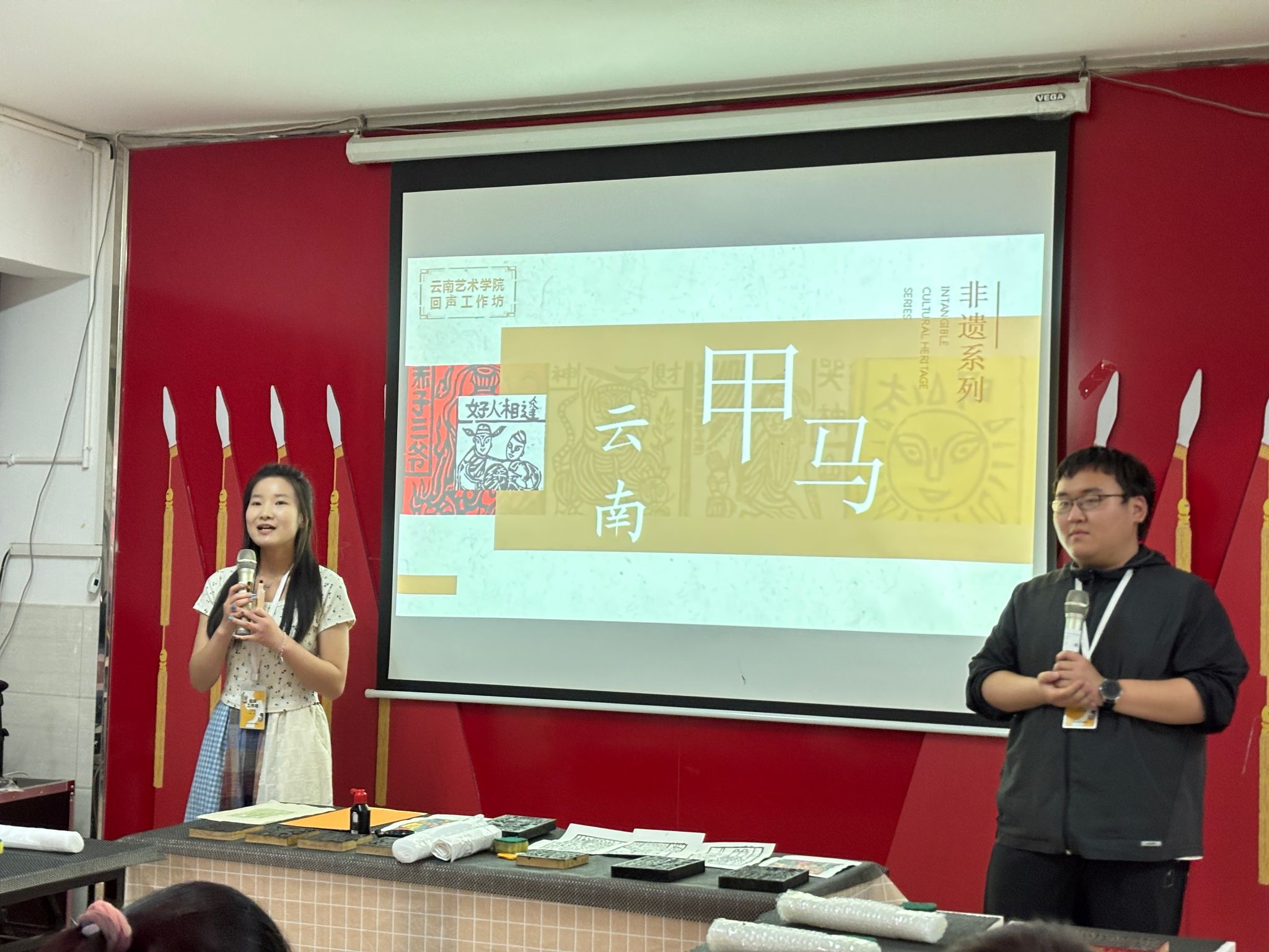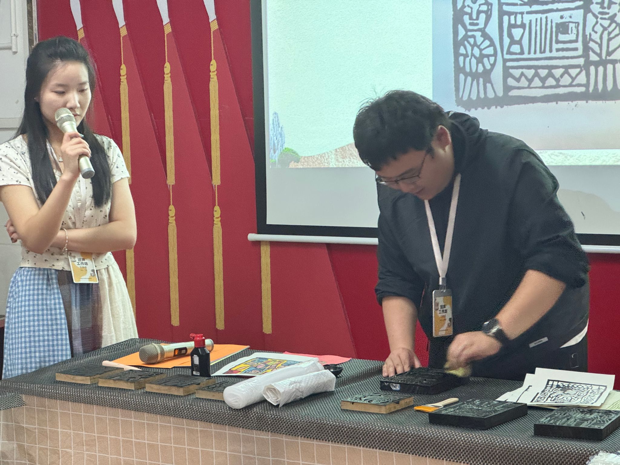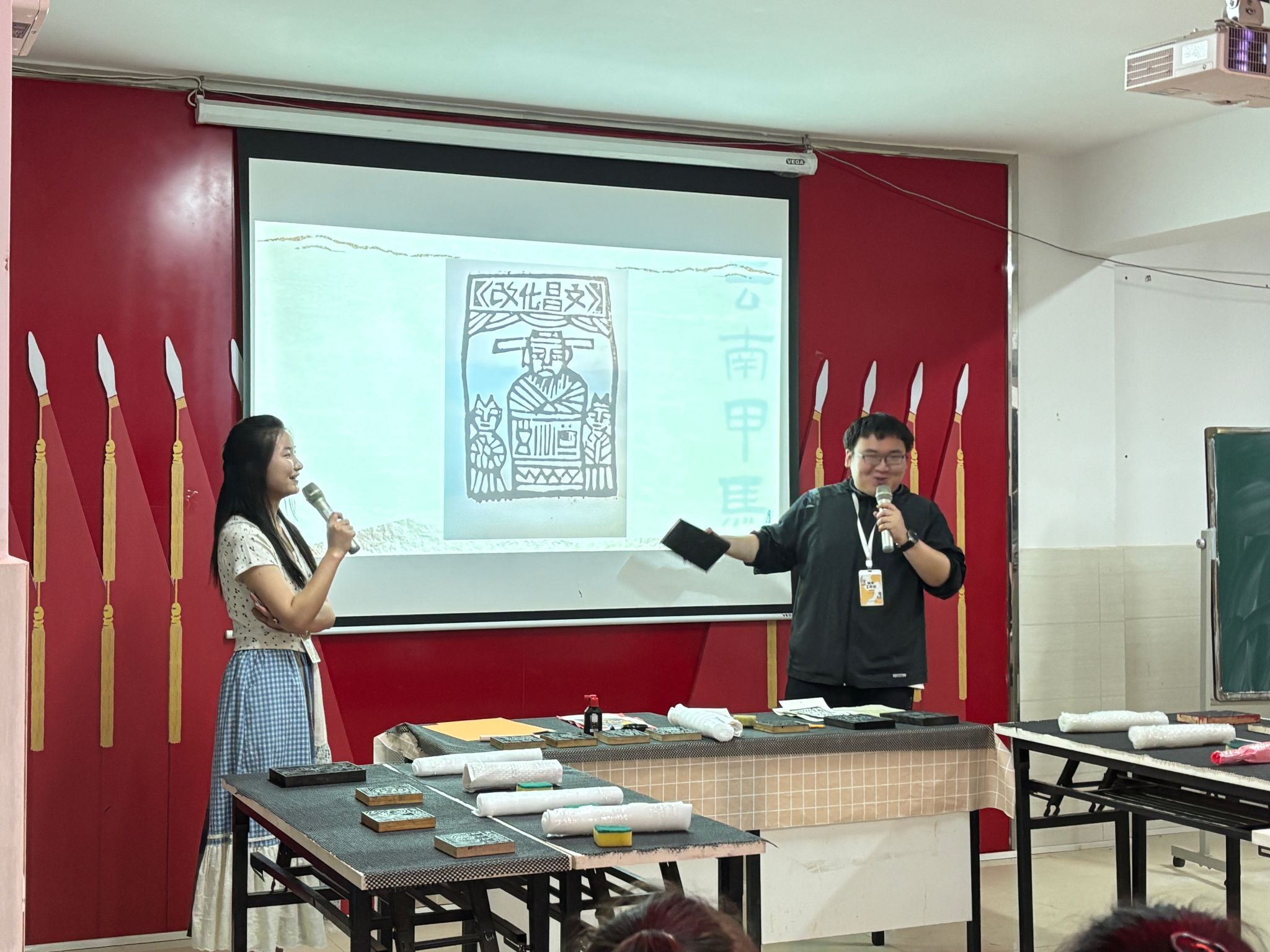 志愿者讲述甲马版画中的故事