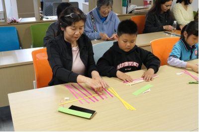 工作坊志愿者以生动的故事为切入点,向居民们讲述端午节的起源与文化内涵,重温屈原的爱国情怀。从粽叶飘香的习俗到龙舟竞渡的寓意,居民们在历史回溯中感受传统节日承载的民族精神。实践环节,志愿者耐心演示了用竹篾制作小船挂件和用折纸制作三角粽的方法与技巧,一根根竹篾随即在居民的手指间飞舞起来。随着竹编挂件逐渐成型,在场的参与者们也共同编织了一段独特的端午记忆。