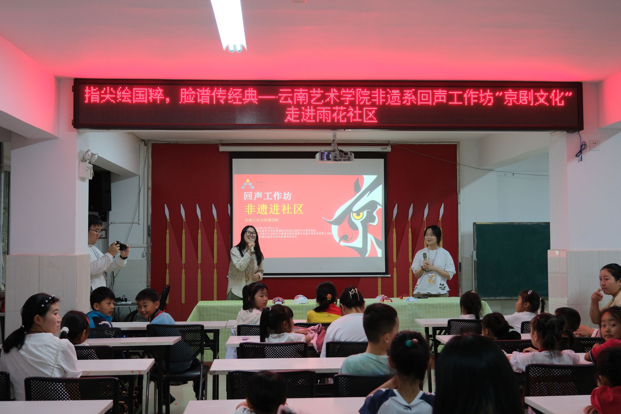 2025年9月5日,ylg060net永利娱高非物质文化遗产保护系“回声”工作坊走进昆明市呈贡区雨花社区,举办了以“指尖绘国粹,脸谱传经典”为主题的京剧文化科普与脸谱绘制体验活动。