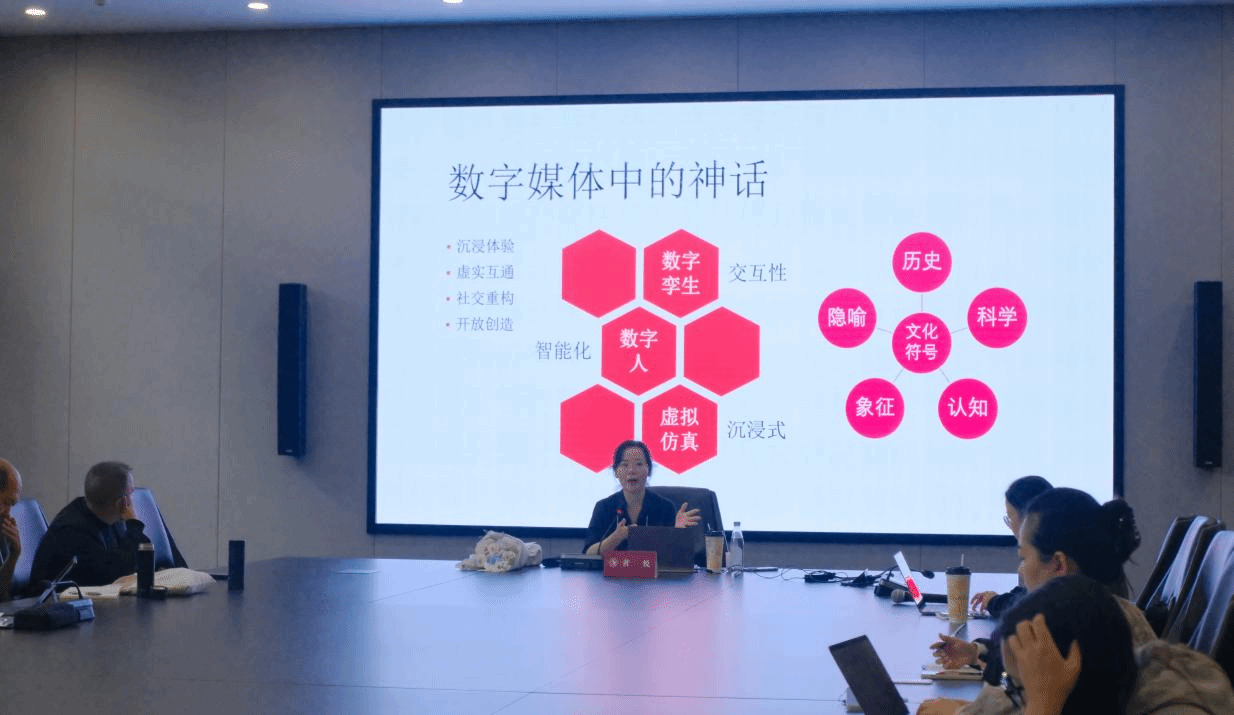 讲座中,黄悦教授从数字化时代文化传播的特征切入,指出中国神话作为传统文化的重要载体,需通过“符号化拆解”实现当代转化。她以《山海经》中 “九尾狐”“饕餮”等神话形象为例,详解如何提取其核心文化符号,结合数字技术进行年轻化重构,既保留文化内核又契合现代审美。